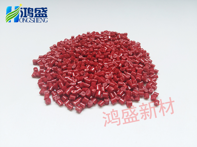 (左:塑料粒 右:鴻盛紅色免噴涂材料)