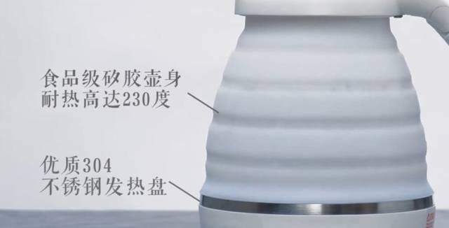 與嬰兒奶嘴同級別的食品級硅膠。由鉑金級材料制作而成的食品硅膠,通過美國FDA認證。具有穩定的化學性質,適合在-40℃~230℃的溫度中使用,不會變黃、破裂,無毒無味無傷害。壺底采用的則是食品級304不銹鋼,壺蓋和手柄均采用食品級PP塑料制作。