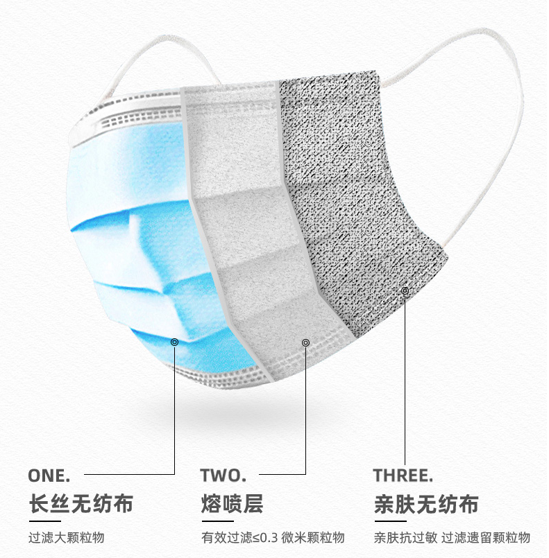 對(duì)于醫(yī)用口罩,一般分為三層:第一層是防水除菌層、第二層是過(guò)濾駐極層、第三層是吸水親膚層。 而給口罩帶來(lái)病毒過(guò)濾主要作用的就是極細(xì)密且?guī)ъo電的中層過(guò)濾布---熔噴無(wú)紡布。