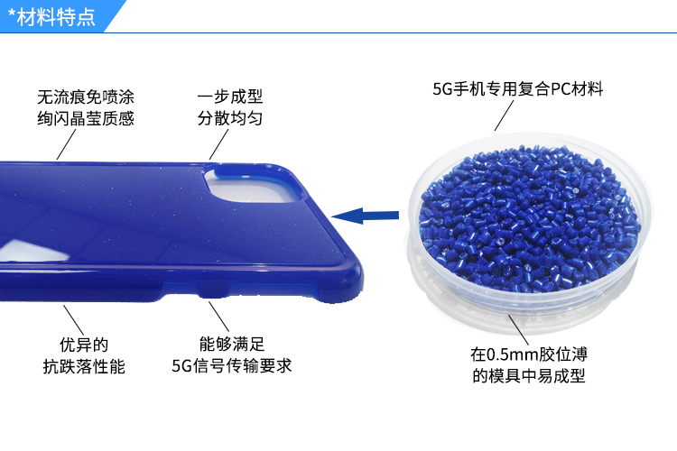 C79系列免噴涂是鴻盛在5G時(shí)代背景下研發(fā)出的一款專用于5G手機(jī)殼/手機(jī)保護(hù)套/手機(jī)背板/平板/智能穿戴上的免噴涂抗菌材料,是一款在各方面性能、成型工藝及表現(xiàn)效果上都有所突破的材料,免去噴涂,低V0C,節(jié)省成本,高效一步成型。性能升級(jí),百折不斷不發(fā)白,輕薄手感薄壁0.5mm。
