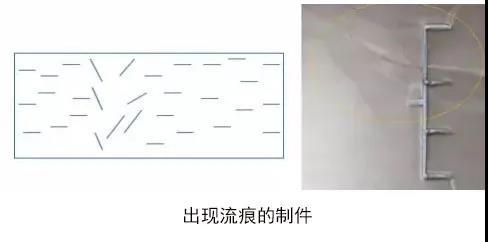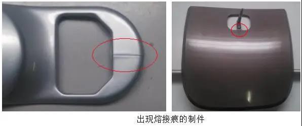 熔體在交匯位置處發生金屬顏料或者珠光顏料的堆集(導致樣件不同部位密度不同所產品的視覺差異)產生熔接痕。