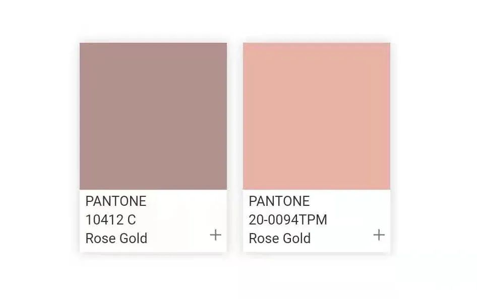 單純通過肉眼觀察,類似“玫瑰金”系列的色彩還有很多很多,經過篩選,我們找到了部分與“玫瑰金”視覺相似的顏色,分兩個方面:一類是偏向暗色調的“玫瑰金”色彩;一類是偏向粉嫩色系多一點的“玫瑰金”色彩。請注意這些顏色是由計算機模擬的顏色,不同設備上顯示會有所區別,當這些顏色加上金屬質感時效果會更佳完美。