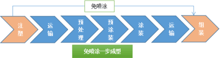 傳統著色:環境惡劣,對作業人員呼吸、循環、消化和生殖等系統會造成不同程度損害,且制品中含有的揮發性有機物VOCs,對消費者生活環境造成一定的威脅。相對而言,免噴涂塑料優勢突出:無噴涂,一次成型,工序簡單,整個過程低碳環保。