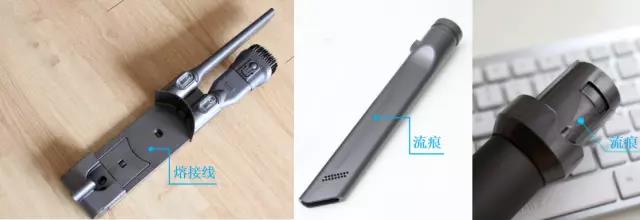 但是,戴森吸塵器的免噴涂方案與國內(nèi)傳統(tǒng)方案一樣,流痕和熔接線都非常明顯,這款產(chǎn)品在歐美市場暢行無阻的一個比較大的原因在于國外消費者環(huán)保觀念非常強烈,對環(huán)保的重視使他們能夠容忍這種免噴涂材質(zhì)存在的一些表觀不良。