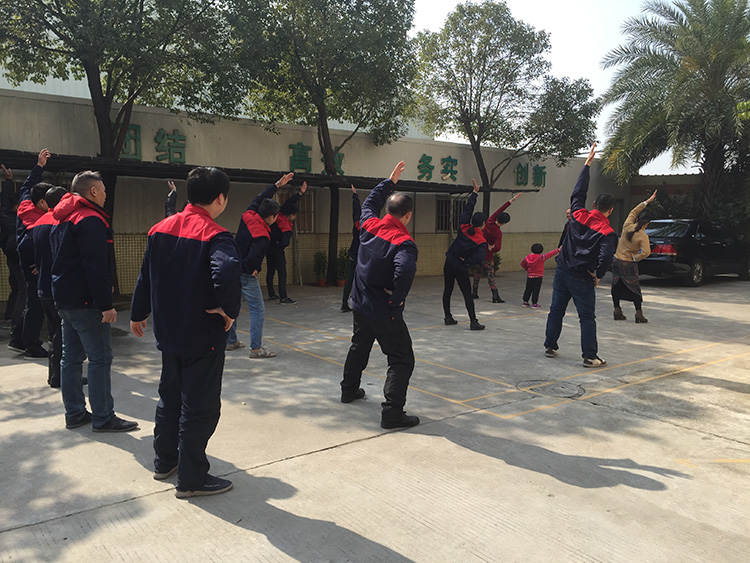 10點30分一到,大家像平時一樣齊齊出來排隊做早操,在第八套廣播體操的旋律中,男女老少都愉悅的揮舞手臂舒展肢體,為日后更好的工作和服務客戶打下健康的身體基礎。