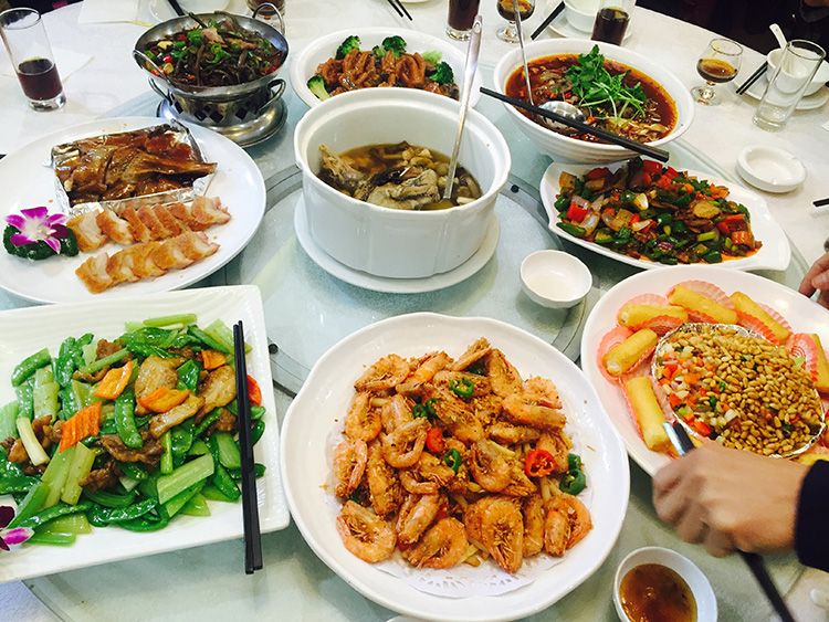 (正午一到,大家齊齊吃年飯)