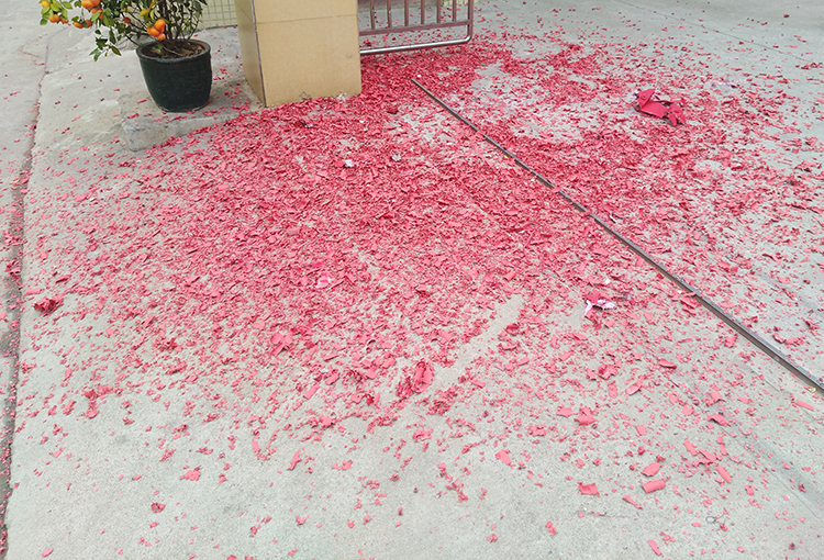 爆竹聲后,碎紅滿地,象征“滿堂紅”