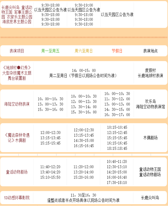 (長鹿農(nóng)莊活動時(shí)間安排表)