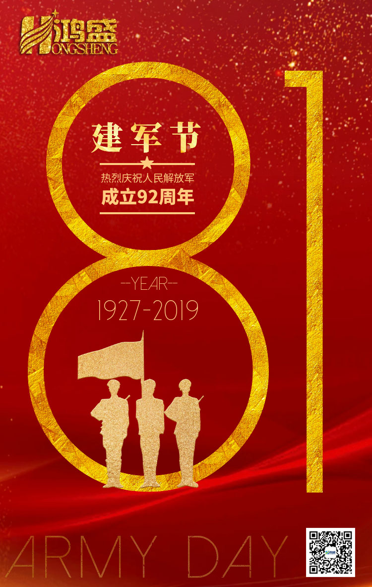 當歲月的指針經過了九十二年的歷程,再次閃亮地指向了“8.1”的刻度,華夏大地,軍旗迎著勁風正颯颯飄揚,它向世界隆重宣告:中國人民解放軍第九十二個建軍節到來了!鴻盛新材全體同事向每一位軍人致敬!