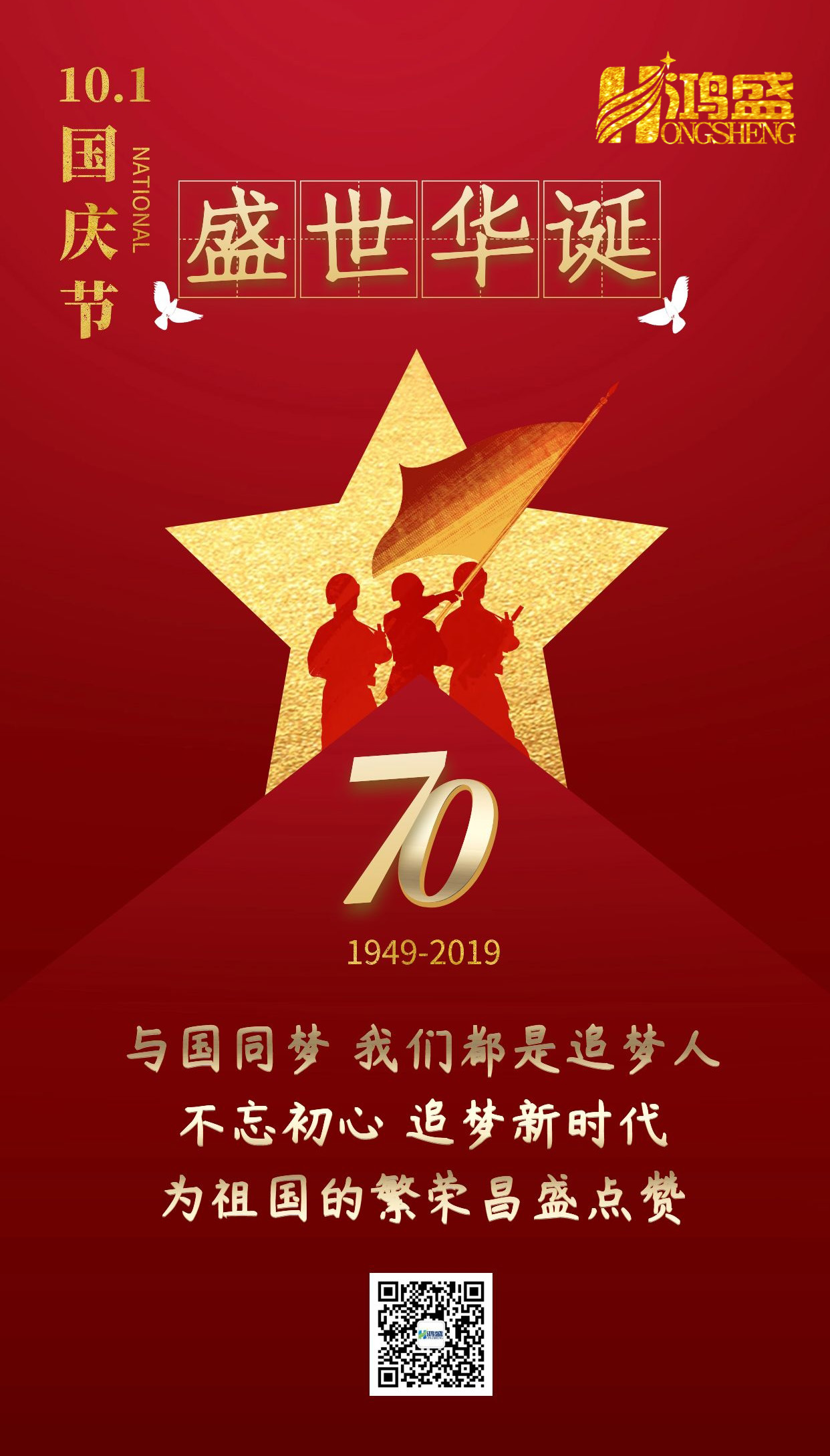 在中華人民共和國成立70周年之際,鴻盛新材全體人員提前預祝大家國慶節快樂!也在此向我們越來越強大的祖國以及每一位老革命家致以最高的敬禮!
